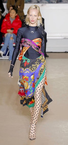 There's no way to scroll through Instagram without seeing an animal print this season; but there's another pattern that's vying for our attention - the scarf print. Also known as the chain print, this AW18 trend has been inspired by none other than Her Majesty The Queen's off duty Balmoral look which always incorporates a silky scarf as an accessory. With The Queen on the FROW at Richard Quinn's AW18 London Fashion Wee show, the designer took the simple scarf and used it as inspiration for dresses and outerwear. The dresses had handkerchief hems, flowing silky silhouettes and were crammed full of vibrancy and colour. He wasn't alone in the silk scarf movement, with Parisienne designers like Marine Serre and Faustine Steinmetz showing patchwork scarf dresses and skirts. Japanese designer Toga also featured the print in their LFW collection, Jacquemus did in Paris, as well as Salvatore Ferragamo and Versace in Milan.