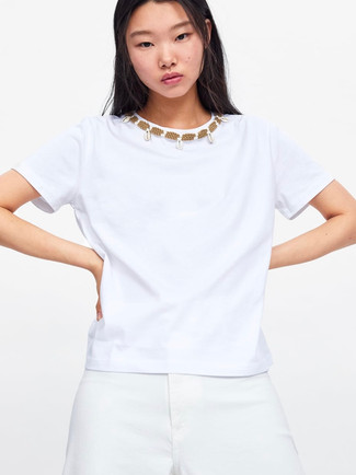 Row 3 - Shell Necklace, Gold Earrings, both Mango, Shell Neck T-shirt from Zara